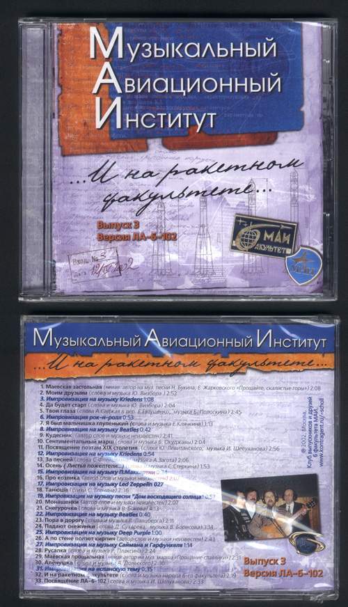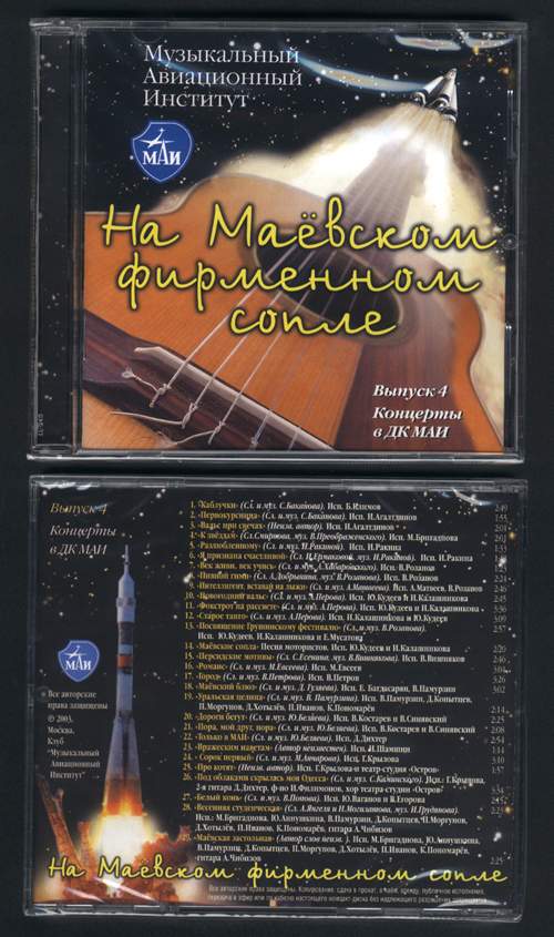 3. CD “На маевском фирменном сопле / Музыкальный авиационный институт. Выпуск 4. 2003 г.” (29 песен) – в наличии 450 экз
