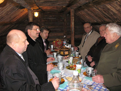 Назад Далее 26-02-2008. Фото №0. Организационный комитет в Брянске. На фото - Делегация Оргкомитета на приеме в землянке мемориала "Партизанская поляна" в Брянске. Слева - представитель Дворянского собрания Вебер В.Ф., зам. Губерантора БО Требунов А.Н., депутат Брянской ОД Медведь И.В., Справа - маршал артиллерии Михалкин В.М. (Председатель), Директор НИИПМЭ Попов Г.А. и Президент АИН Шоль Е.И. (зам. Председателя) | ||