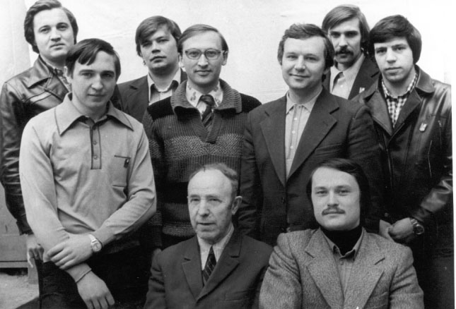 Назад Далее 01-09-1982. Фото №0. Отдел материально-технического снабжения На фото - Отдел снабжения МАИ: стоят - Шпилев Павел, Николаев Геннадий (руководител группы), я (начальник отдела), Кашинцев Владимир, Новиков Михаил (руководитель группы); сидят - Абрамов Алексей Иванович (руководитель группы), Иванов | ||