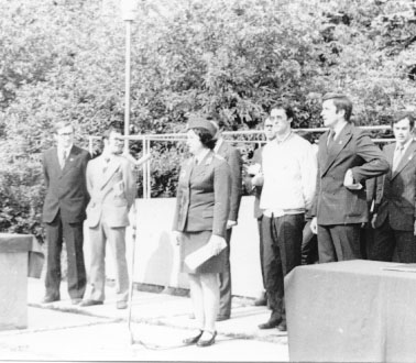 Назад Далее 01-09-1975. Фото №0. Комсомольский оперативный отряд дружинников (КООД) На фото - Трибуна "ритульной" площади МАИ иногда предоставлялась комсомольскому оперотряду. Слева - я, Антонов Михаил Соломонович, Жиркова Галина Григорьевна, Марковский Павел Михайлович и Якмишен Григорий Романович | ||