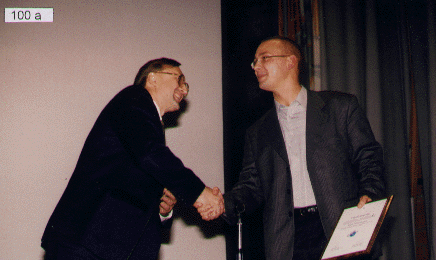 На фото - Вручение свидетельства Клуба выпускников лучшему дипломнику Слева
