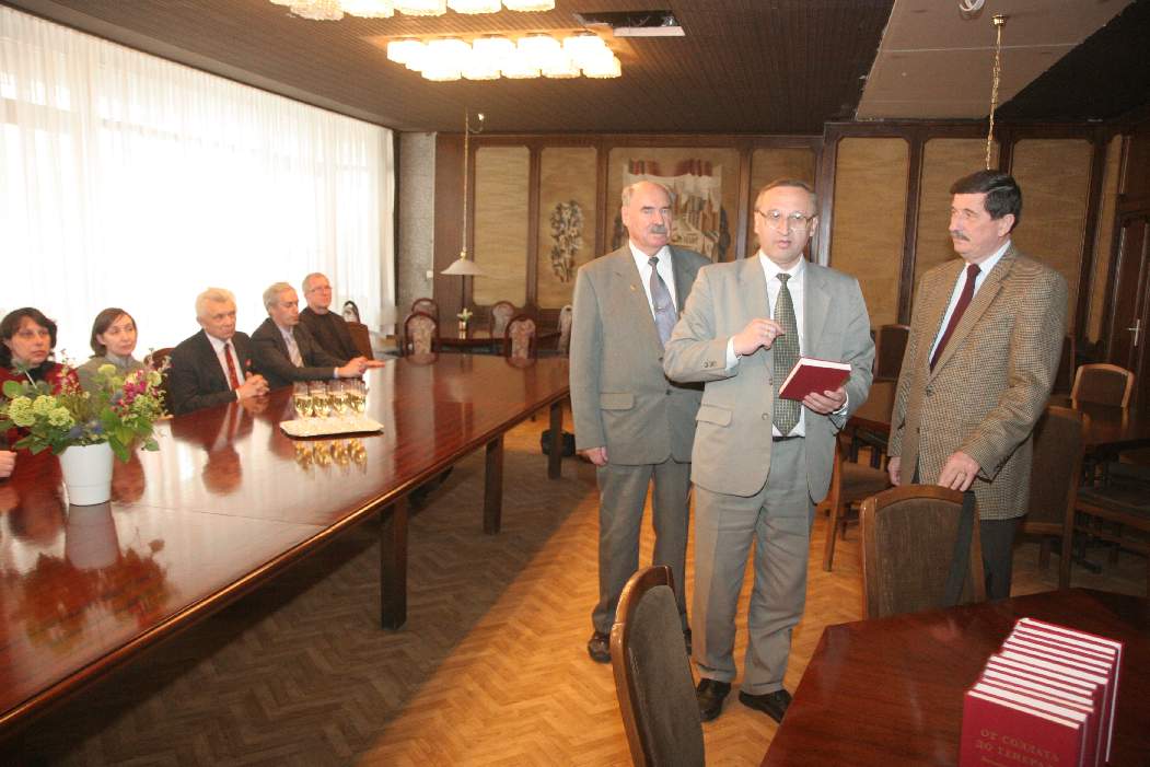 Назад Далее 22-04-2010. Фото №0. Встреча с Руководителем Российского дома науки и культуры в Берлине М.М. Владимиром. Мероприятия в Берлине делегации российских ветеранских организаций по линии научного учреждения "Академия исторических наук" (20-25 апреля 2010 года). Празднование 65-летия Победы советского народа во Второй мировой войне. На фото - Президент АИН Шоль Евгений Иванович передает Руководителю Российского дома науки и культуры в Берлине Владимиру Михаилу Михайловичу в дар библиотеке РДНК комплект из 13-ти томов мемуаров "От солдата до генерала. Воспоминания о войне". | ||