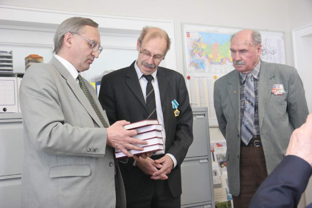 На фото - В информационном центре Stiftung sächsische Gedenkstätten zur Errinerung fn die Opfer politischer Gewaltherrschaft. Президент Академии исторических наук Шоль Евгений Иванович передает руководителю центра Клауса-Дитеру Мюллеру в дар комплект 13-ти томов мемуаров фротовиков "От солдата до генерала. Воспоминания о войне"