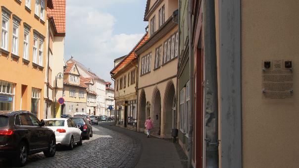 Назад Далее 22-05-2015. Фото №9350. Торжественное открытие 22 мая 2015 года мемориальной доски Лаврентию Блюментросту Старшему - главе династии врачей Блюментростов, ставших в 17-18 веках основателями театральной культуры, музейного дела, инновационного развития и науки России. На фото - 350-171-415 У дома №5 на улице Рёблинга в историческом центре города Мюльхаузена 15-го века (Тюрингия). Вид из центра города на улицу Рёблинга с установленной мемориальной доской. Открыта 22 мая 2015 года обербургомистром города Мюльхаузена доктором Иоханесом Брунсом и президентом Академии исторических наук Шоль Евгением Ивановичем. | ||
