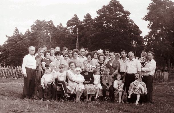 На фото - Общий сбор в 1989 году родственников семьи Шоль в селе Бармашино Щучинского района Кокчетавской области