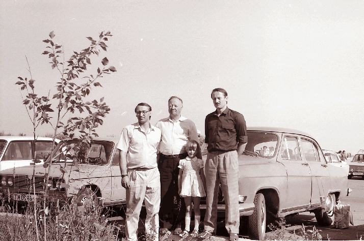 На фото - Я, отец Шоль Иван Романович, брат Шоль Павел Иванович и дочь Павла - Мария. За нами - служебная машина отца - ГАЗ-21.