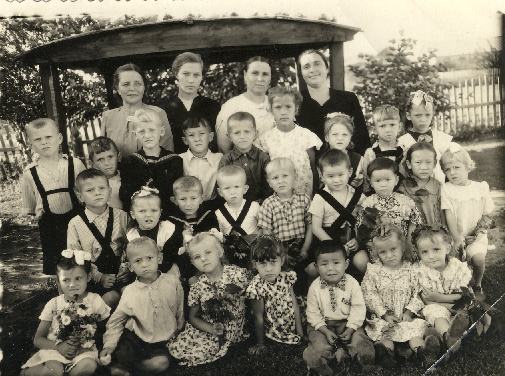 Назад Далее 01-09-1958. Фото №0. 1958. Детский сад. Село Чкалово Кокчетавской области. На фото - 1-й ряд сверху: +, Любовь Трофимовна,+, Раковская; 2-й ряд сверху: +,+,+,+,+,+,+,+,+; 3-й ряд сверху: +, Раковская Елена,+, Опрышко Владимир Владимирович, Шоль Евгений Иванович, +,+,+,+; нижний ряд: +, Цильке Артур, Почепко Надежда, +, Сайку, +, Кузенная Татьяна | ||