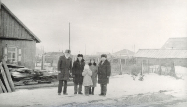 На фото - Дед Роберт (второй), сестренка Люда, бабушка Альма, отец Иван и я (слева) перед домом деда