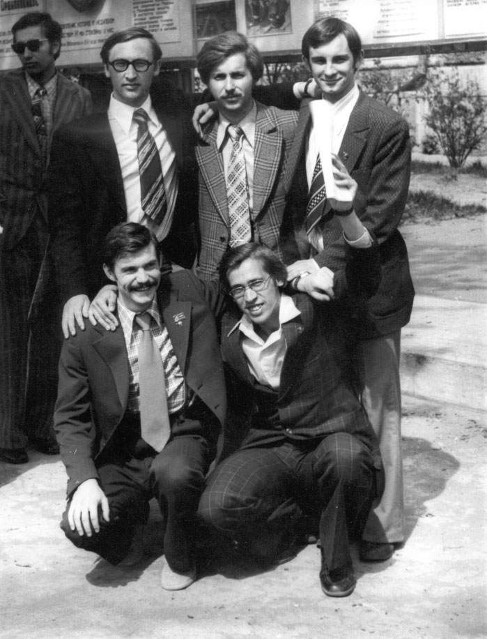Назад Далее 12-03-1978. Фото №0. ЛА-6-102 На фото - Студенчество закончилось - уже инженеры. После защиты диплома у стенда на Волоколамке однокомнатные общежитейцы и однокашники по 102-й группе - стоят я, Шелуханов Игорь и Гнездилов Владимир; сидят - Сергеев Сергей и Дробышев Виктор | ||