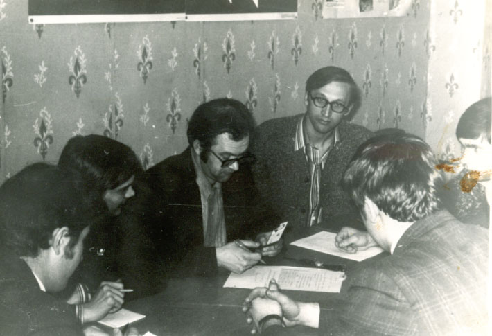 На фото - Заседание штаба комсомольского оперативного отряда. Анатолий Моргунов, Михаил Антонов и я.