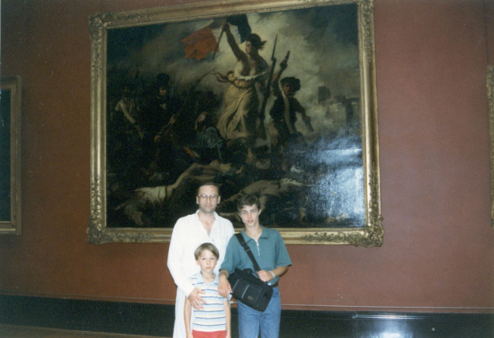 На фото - Революция на картине в Лувре и около нее - я, Артем и сын Роман