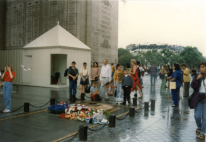 На фото - Триумфальная арка Елисейских полей Парижа - место паломничества туристов. Артем Лидяев, сестра Людмила, Наталия и я.