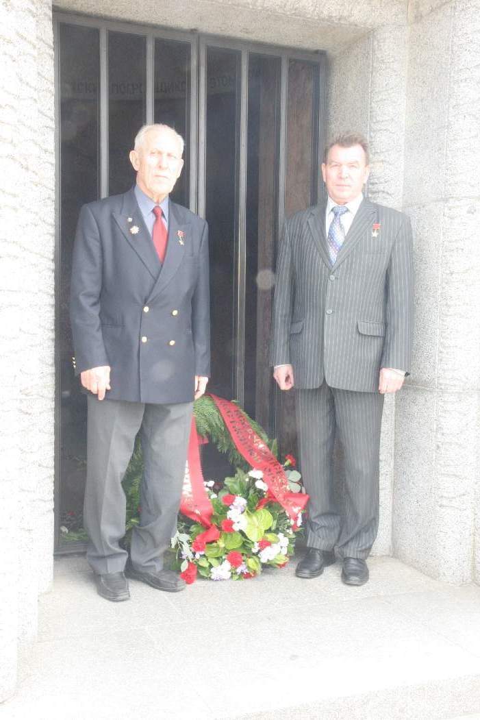 Назад Далее 20-04-2010. Фото №0. Возложение венков к российскому мемориалу в Трептов парке. Экскурсия по Берлину. Мероприятия в Берлине делегации российских ветеранских организаций по линии научного учреждения "Академия исторических наук" (20-25 апреля 2010 года). Празднование 65-летия Победы советского народа во Второй мировой войне. На фото - Герой Советского Союза Рунов Борис Александрович (слева) и Герой Совестского Союза, Председатель Клуба героев Советского Союза и Российской Федерации Антошкин Николай Тимофеевич в почетном карауле у подножия монумента Советскому солдату. | ||
