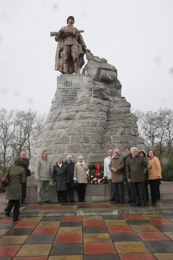 Назад Далее 21-04-2010. Фото №0. Посещение музея "Зееловские высоты". Мероприятия в Берлине делегации российских ветеранских организаций по линии научного учреждения "Академия исторических наук" (20-25 апреля 2010 года). Празднование 65-летия Победы советского народа во Второй мировой войне. На фото - Делегация у памятника Советскому солдату мемориала Museum Seelower Höhen. Слева-направо: Bögel Ludmila, Новиков Игорь Михайлович, Шоль Евгений Иванович, Дементьев Василий Дмитриевич, Порохня Виктор Сидорович, Колесникова Зинаида Андреевна, справа от венка Карабанов Дмитрий Иванович, Рунов Борис Александрович, Антошкин Николай Тимофеевич, Епихин Виталий Иванович, Лидяева Наталия Игоревна, Федулова Татьяна Михайловна. | ||